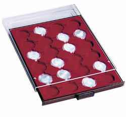 przeznaczona jest do przechowywania i estetycznego wyeksponowania monet okolicznościowych USA - Silver Eagle, 1 $ Ag - w dużych kapslach,ułatwia transport i umożliwia bardzo wygodne przenoszenie Twojej kolekcji,kaseta posiada 20 miejsc na monety o średnicy 41 mm,wymiary kasety: 236 x 303 x 20 mm,kolor wkładu: ciemnoczerwony,dzięki specjalnym "nóżkom" do łączenia kaset, kasety można układać pionowo,ponadto do kaset można dokupić specjalne kufry firmy Leuchtturm, które zamykane są na kluczyk i przeznaczone do przechowywania 5 lub 10 kaset.
