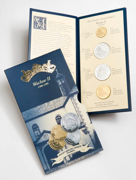 w eleganckim blistrze z wizerunkiem popiersia i półpostaci Wacława II, wybite w niskim nakładzie - tylko 1000 sztuk.