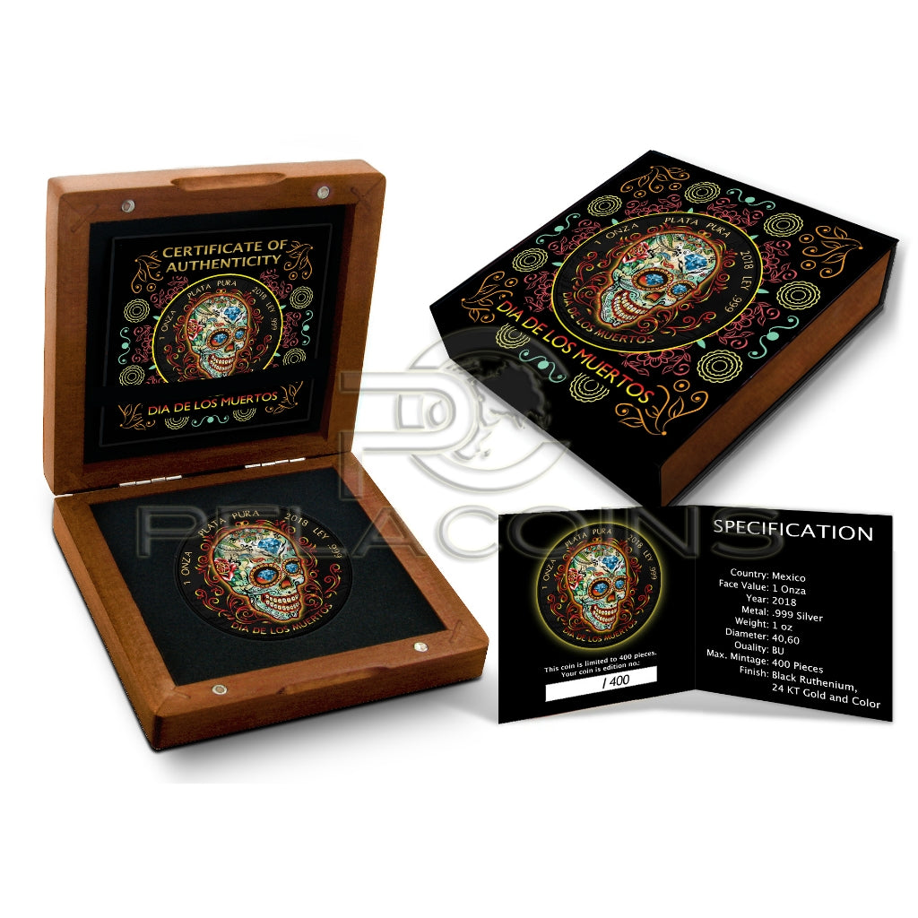 Mexico 2018 1 onza Libertad - Día de los Muertos 1oz Ruthenium Goldplated Silver Coin